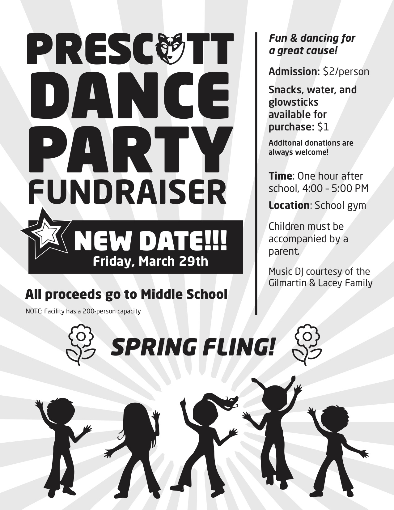 Please view the flyer below for the Dance Party. The DATE CHANGED to Friday, 3/29.