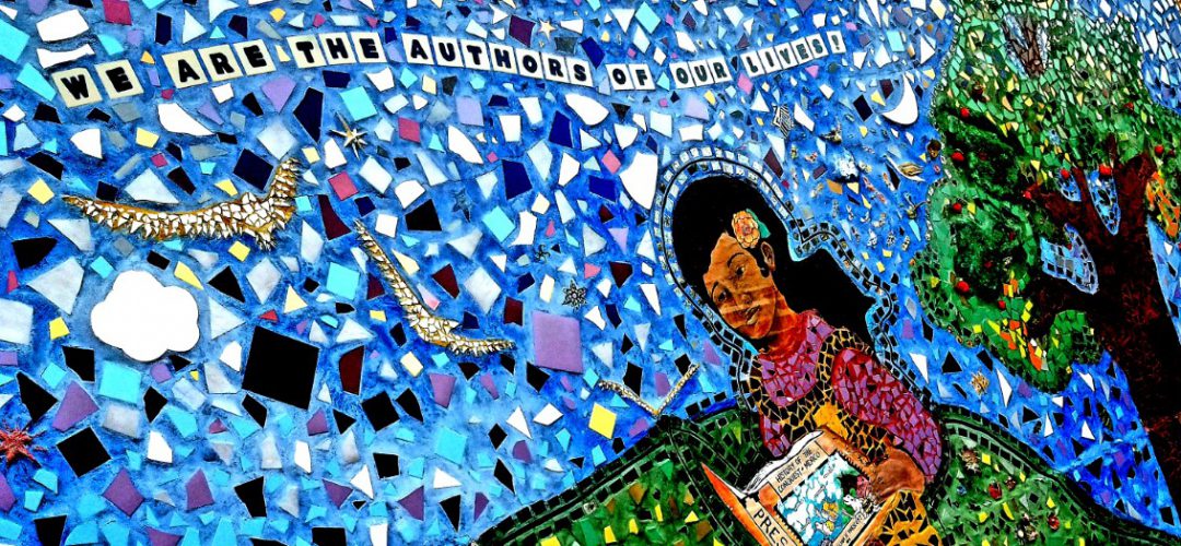 Years ago, Prescott Parents embarked upon our very first significant fundraising project – the “We are the authors of your lives!” tile mosaic! The beautiful colors, the sparkling mirrors and the inspiring design carried us through a few very difficult transitions and many more exciting adventures.