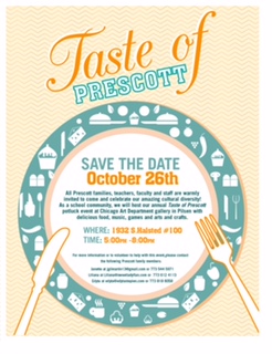 As many of you know, our food tables are always a showcase of Prescott’s diversity! Please kindly bring your favorite dish to share with other families. We will have adequate supplies of steam trays, sternos, wire racks, power outlets and serving utensils.