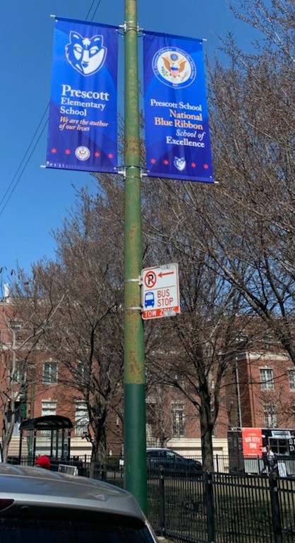Next time you’re at Prescott or at the corner of Diversey and Ashland, check out the new signs erected celebrating Prescott’s 2019 Blue Ribbon School of Excellence Award. Special thanks to Valentine Bock, parent of a Prescott student, who designed the signs. There are signs on the front of the school and on select light poles along Ashland.