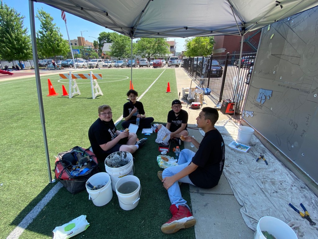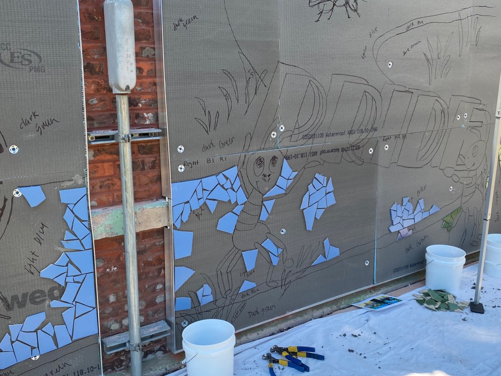 Thanks to a generous $7,500 donation from an anonymous donor, 8th graders worked together to design and build a very large mosaic—to replace the previous one that graced Prescott for years— for the brick wall on the NW section of the playground.