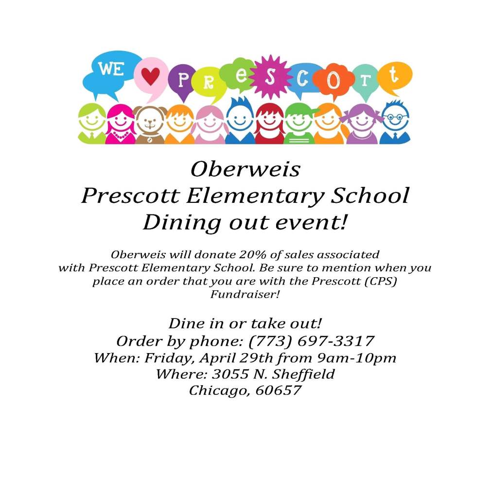 Join us for the Oberweis ‘Pop Up Fundraiser’ Friday, April 29th! Stop in for some ice cream at Oberweis anytime between 9:00 a.m. – 10:00 p.m. and 20% of sales will be donated to Prescott. Be sure to mention you are with the Prescott (CPS) fundraiser!
